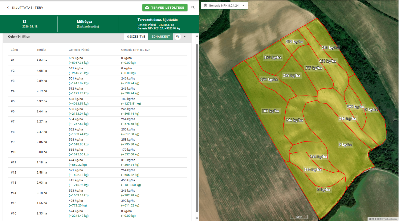 Mindkét módszer esetebén lehetőség van az alap- és a fejtrágyázás egyidejű megtervezésére, illetve, ha megosztva szeretnénk kijuttatni a fejtrágya mennyiségét, akkor ezt is be lehet állítani a felületen.