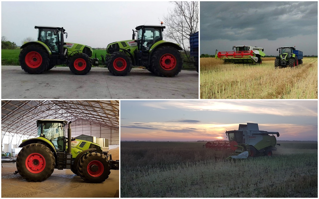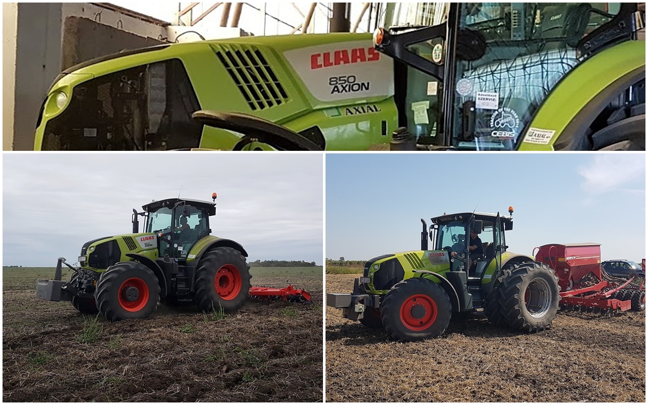 Vásároltunk két Trimble automata kormányzási rendszert, négy előkészítéssel. 2007 óta Fendt traktorjaink vannak, de egy közeli cég tapasztalataira alapozva kipróbáltam egy AXION 930-as erőgépet is. Kemény körülmények között történt, mivel akkor elég csapadékos volt az ősz, de a demózásra hozott gép erős felszereltséggel rendelkezett. Megtetszett. Néztünk 800-as AXION-t is, végül egy olyan bemutatógépet sikerült megvásárolnunk, amely a bajai telephely gépkiállítói terének „küszöbén” állt – Ruszbach László, CLAAS területi képviselő ajánlotta nekünk, hogy meg kellene néznünk. Ez egy olyan gép volt, amelyet tanfolyamokan használtak, ez indokolta a magasabb felszereltséget is. Nekünk jól bevált és azóta is használjuk.