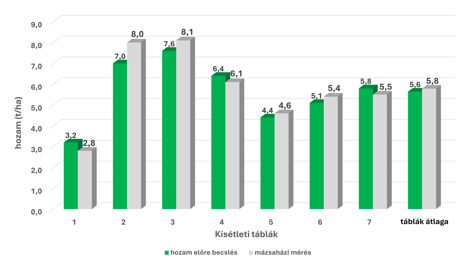 Az előre becsült és a betakarítás után mázsaházban mért hozamok összehasonlítása. Az eltérések a gazdaságok által számolt hozamadatok sem tekinthetők minden esetben teljes mértékben objektív referenciaértéknek, hiszen ezek meghatározását számos, nehezen számszerűsíthető tényező befolyásolja. Ilyen például a betakarított területek méretének pontatlansága, a szántóföldön kint maradt aratási veszteség, a betakarított termény tisztasága. Ezek a paraméterek a gyakorlatban többnyire becsült értékeken alapulnak, így maguk is hordoznak némi bizonytalanságot.