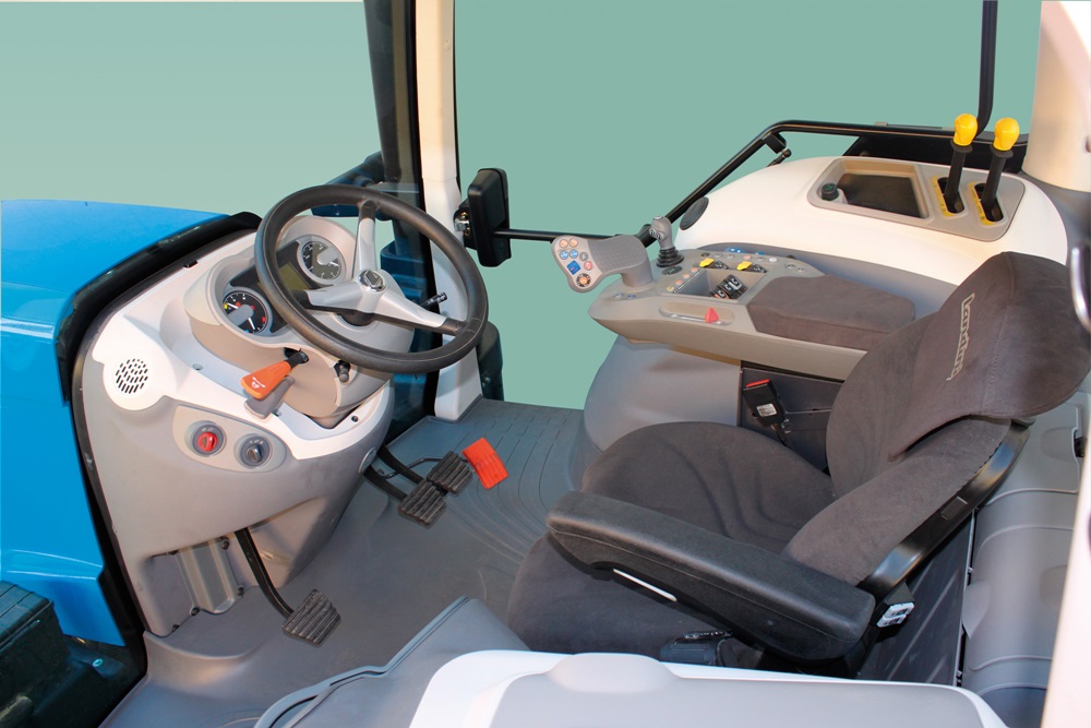 A „Lounge Cab” névre hallgató vezetőfülke egy igazi high-tech környezet, ami kiváló munkahely a vezető számára maximális kezelési komforttal. A légrugózású vezetőülést ellátták egy többfunkciós kartámasszal magában foglalva a traktor fő vezérlőelemeit.