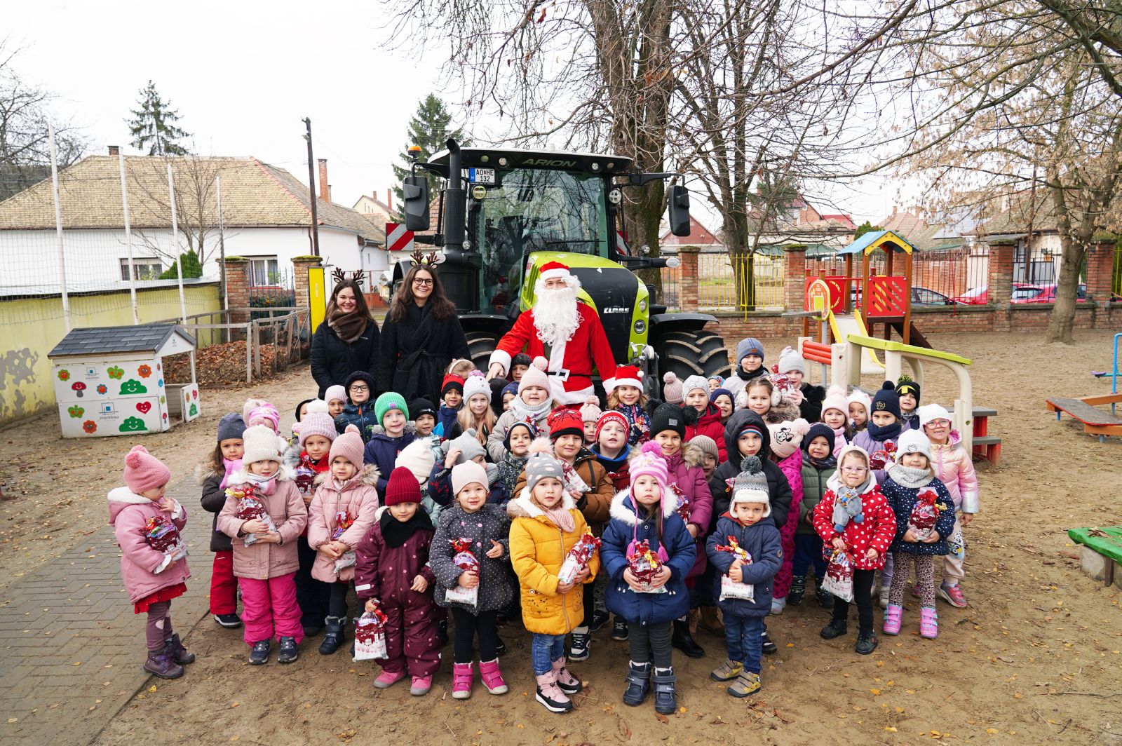 A vállalat hagyományos ünnepi kezdeményezése keretében az AXIÁL Mikulása különleges módon, rénszarvasok helyett, traktorral látogatta meg az óvodásokat. A helyszínen közel hetven mikuláscsomagot osztott ki az intézmény kisgyermekeinek Harsányi Virág, az AXIÁL Kft. stratégiai és fejlesztési igazgatója, a vállalat munkatársainak segítségével.